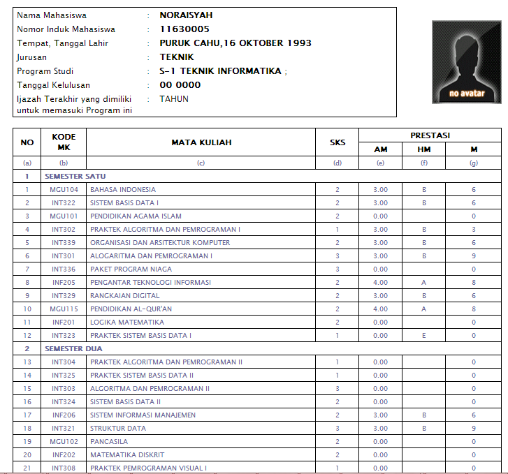KARTU HASIL STUDI