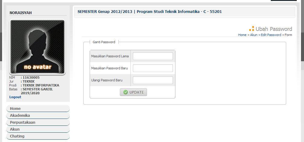 5. Klik tombol "UPDATE".